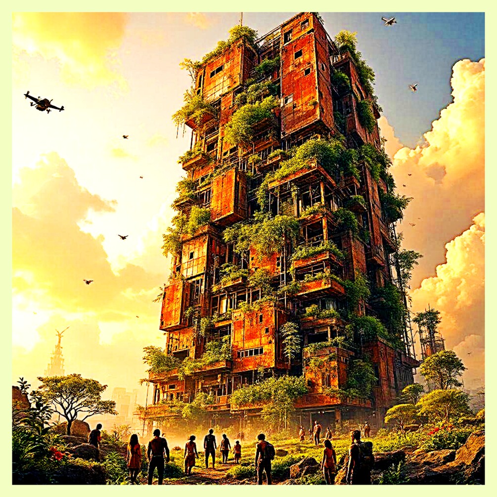 Witness an overgrown city where nature reclaims urban spaces, as people venture forth in this emotional artwork. This powerful post-collapse scene inspires profound thoughts of resilience, hope, and humanity's enduring spirit. Crafted with AI and meticulously enhanced by a skilled artist for unparalleled uniqueness and creativity, it's a truly thought-provoking piece. Perfect for those who appreciate dystopian beauty and symbolic art. Place your order today and embrace the joy of shopping for this compelling digital design!